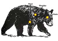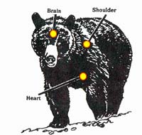 | A brain shot should be taken only when a bear is charging. The shoulder is a better and larger target area. |